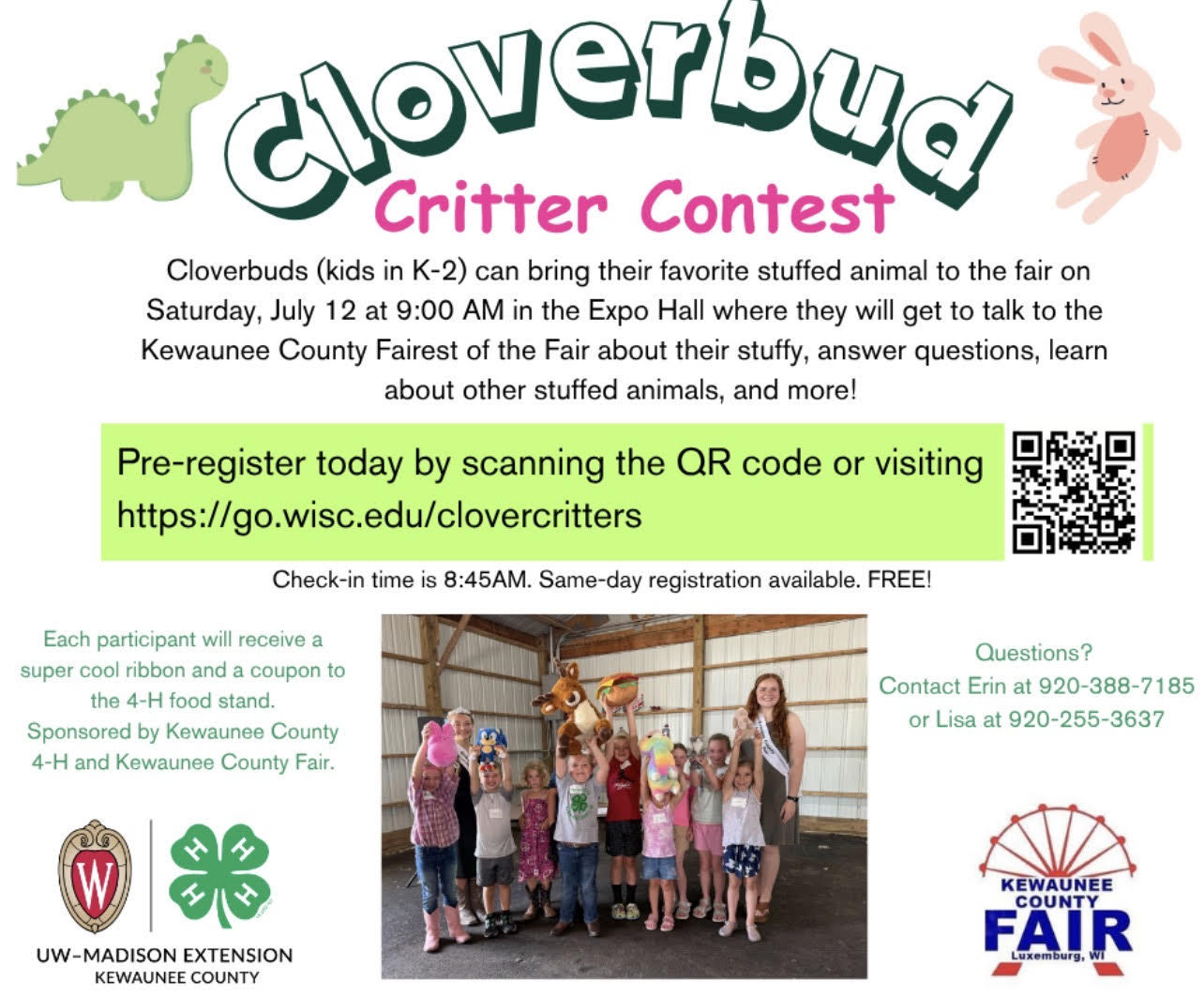 Cloverbuds (kids in Kindergarten through 2nd grade) can bring their favorite stuffed animal to the Expo Hall.
